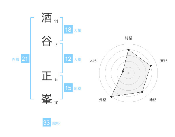 酒谷 正峯さんを姓名の画数から五運を鑑定
