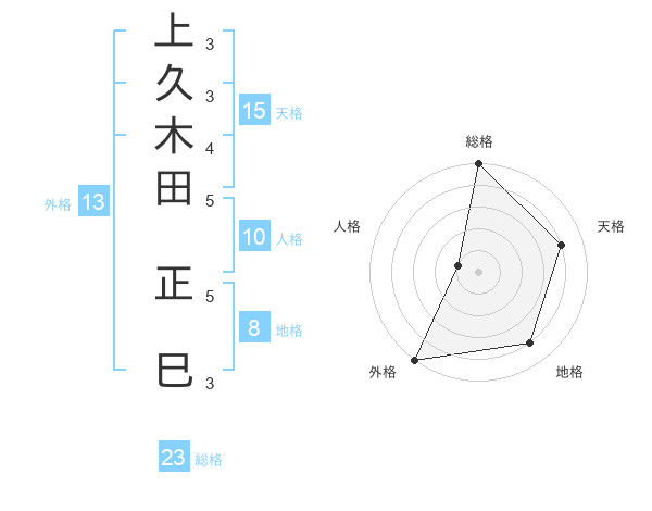 上久木田 正巳さんを姓名の画数から五運を鑑定