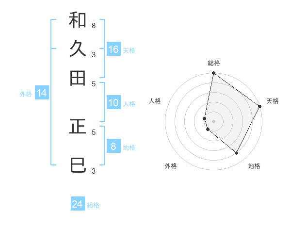 和久田 正巳さんを姓名の画数から五運を鑑定