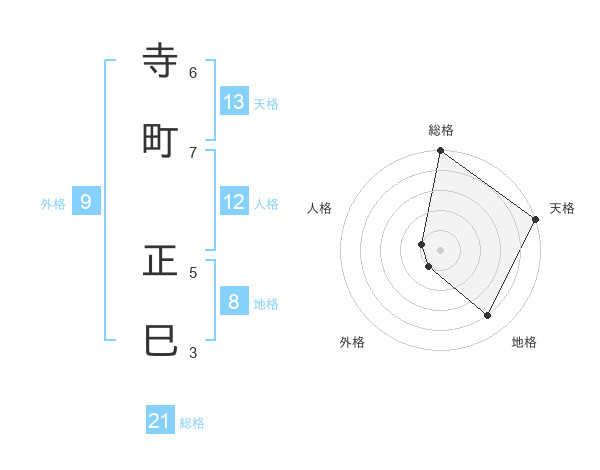 寺町 正巳さんの総格は21画の5点!