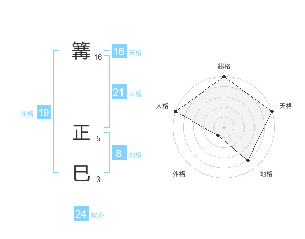篝 正巳さんの総格は24画の5点!
