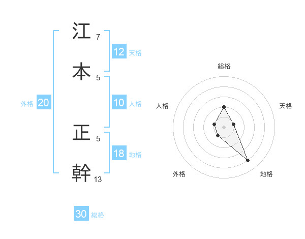 江本 正幹さんの天格は12画の1点!