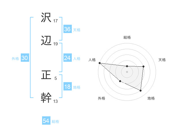 沢辺 正幹さんの天格は36画の3点!