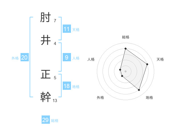 肘井 正幹さんの総格は29画の4点!