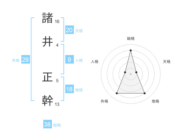 諸井 正幹さんの総格は38画の4点!