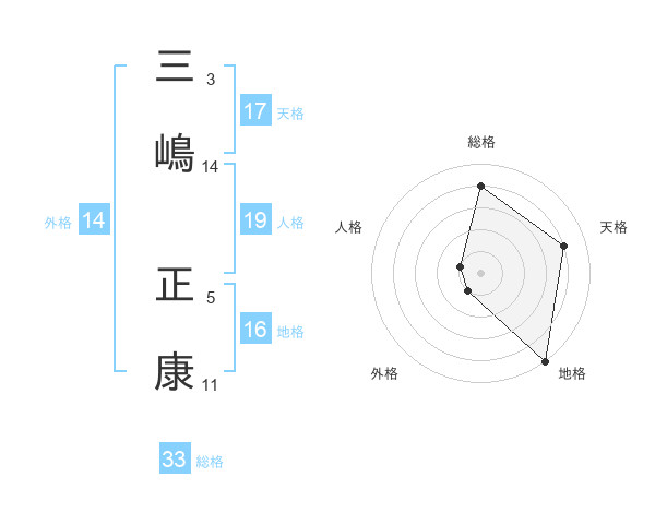 三嶋 正康さんを姓名の画数から五運を鑑定