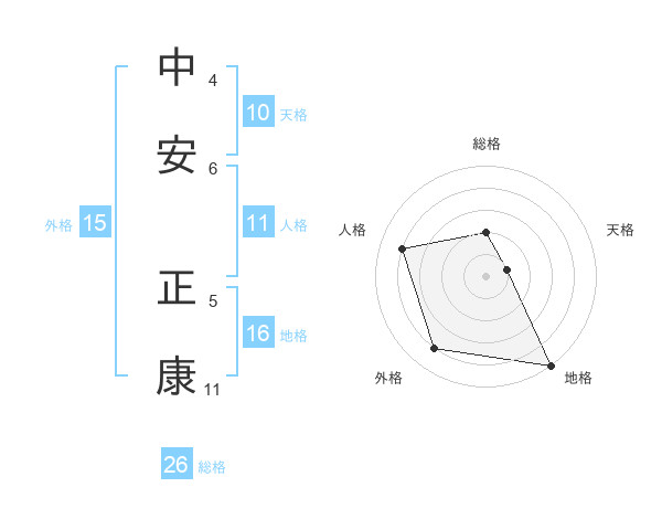 中安 正康さんの総格は26画の2点!