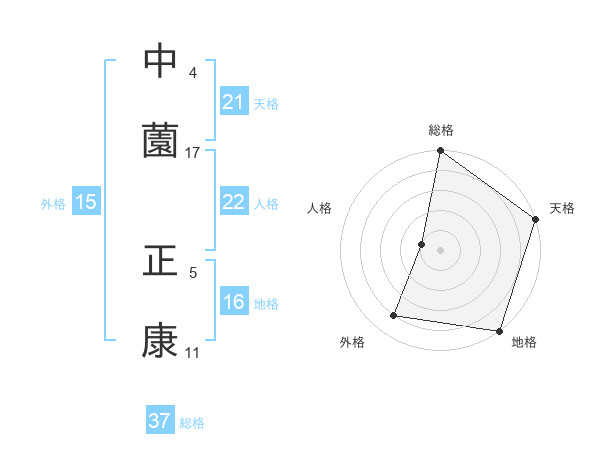 中薗 正康さんの総格は37画の5点!