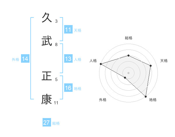 久武 正康さんの総格は27画の3点!