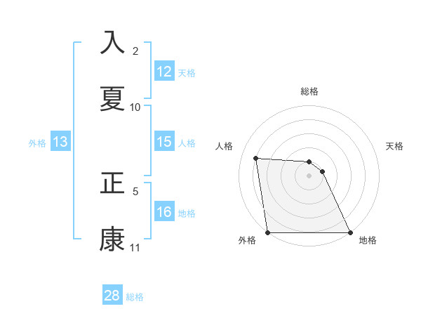 入夏 正康さんの外格は13画の5点!