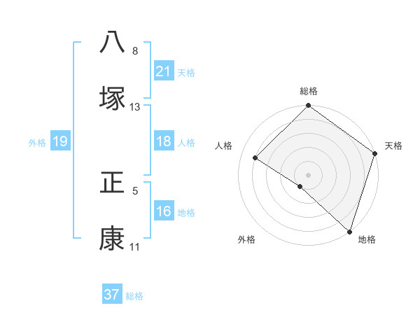 八塚 正康さんの総格は37画の5点!