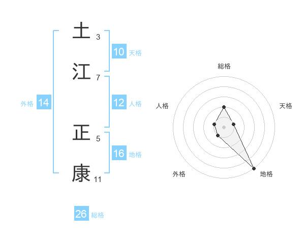 土江 正康さんの総格は26画の2点!