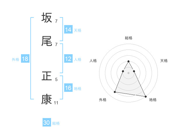 坂尾 正康さんの天格は14画の1点!