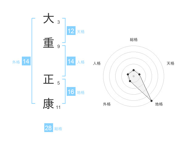 大重 正康さんの総格は28画の1点!