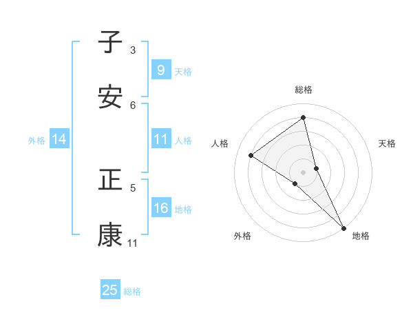 子安 正康さんの総格は25画の4点!