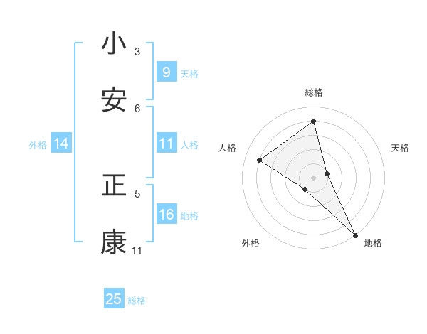 小安 正康さんの総格は25画の4点!