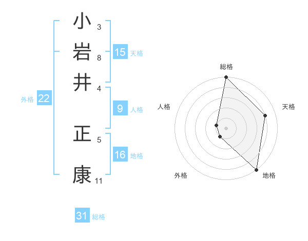 小岩井 正康さんを姓名の画数から五運を鑑定