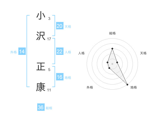 小沢 正康さんの天格は20画の1点!