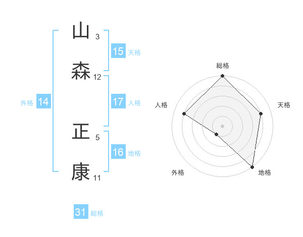 山森 正康さんの総格は31画の5点!