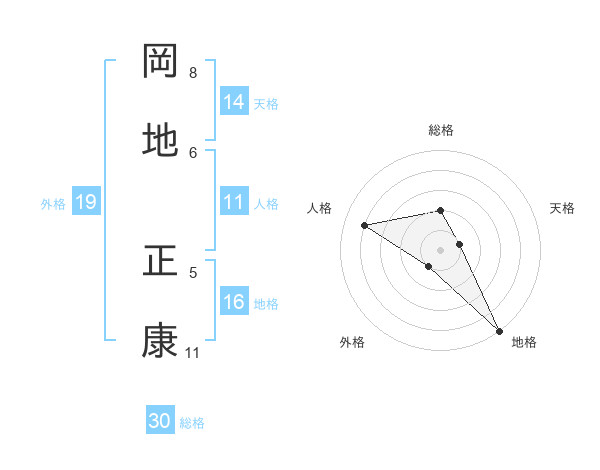 岡地 正康さんの総格は30画の2点!