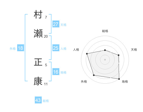 村瀬 正康さんの総格は43画の2点!