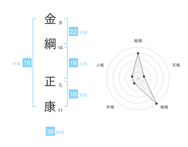 金綱 正康さんの総格は38画の4点!