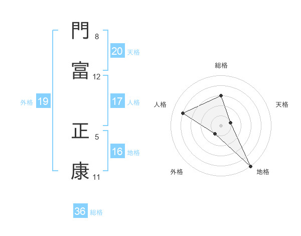 門富 正康さんを姓名の画数から五運を鑑定