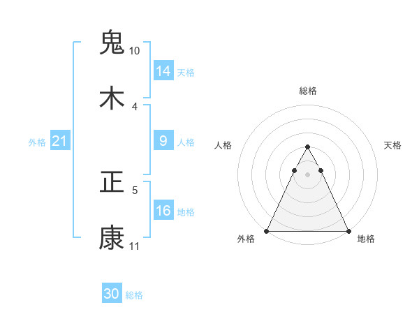鬼木 正康さんの外格は21画の5点!