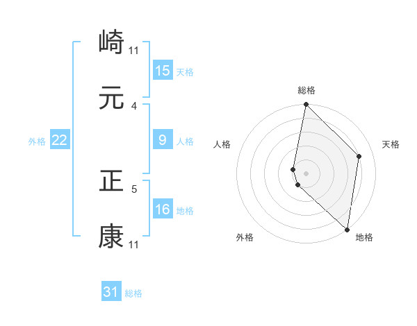 崎元 正康さんの総格は31画の5点!