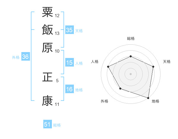 粟飯原 正康さんを姓名の画数から五運を鑑定
