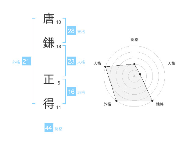 唐鎌 正得さんの外格は21画の5点!