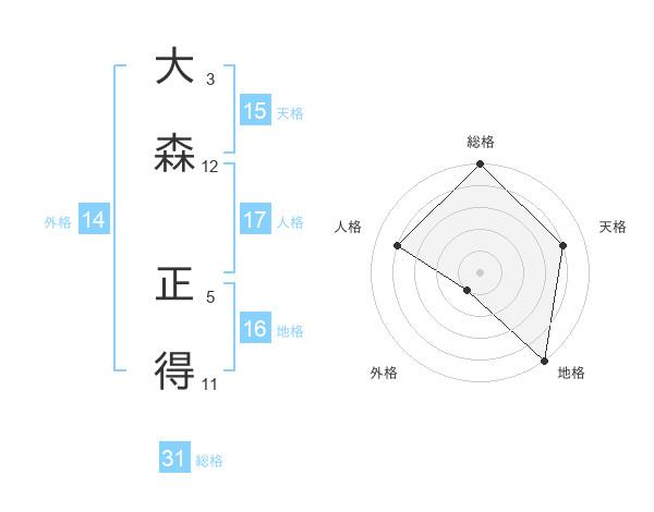大森 正得さんの総格は31画の5点!