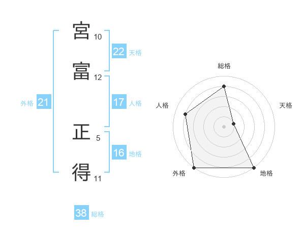 宮富 正得さんの総格は38画の4点!