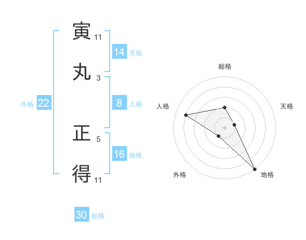 寅丸 正得さんの総格は30画の2点!