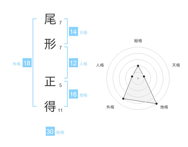 尾形 正得さんの天格は14画の1点!