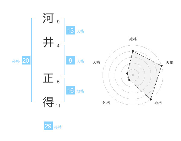河井 正得さんの総格は29画の4点!
