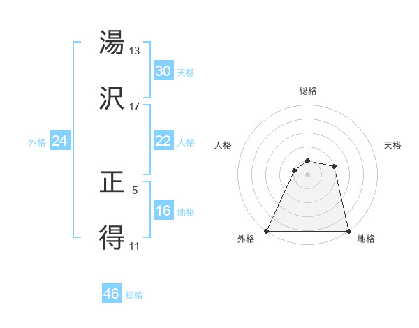 湯沢 正得さんを姓名の画数から五運を鑑定