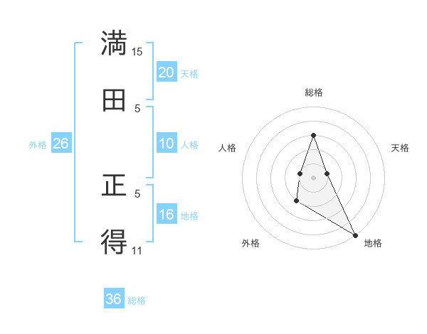 満田 正得さんの天格は20画の1点!