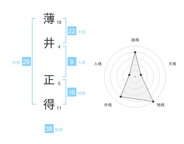 薄井 正得さんの総格は38画の4点!