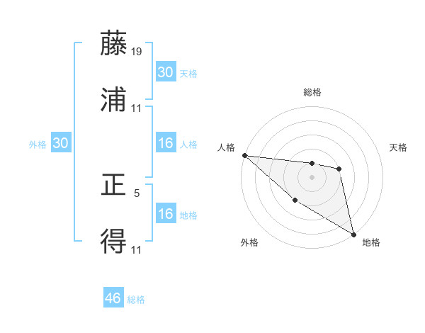 藤浦 正得さんの外格は30画の2点!