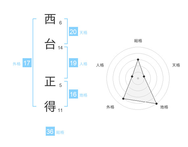 西台 正得さんの天格は20画の1点!