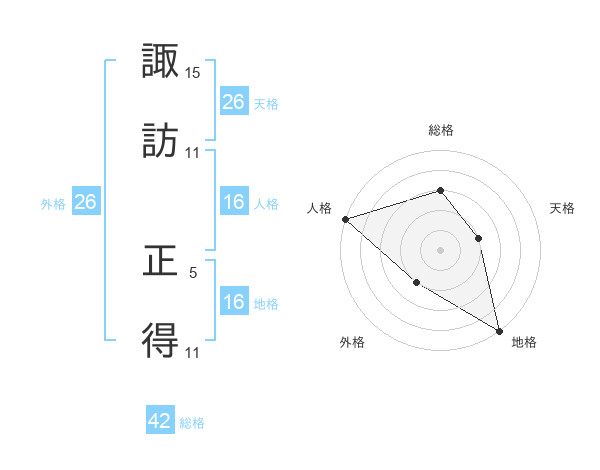 諏訪 正得さんを姓名の画数から五運を鑑定