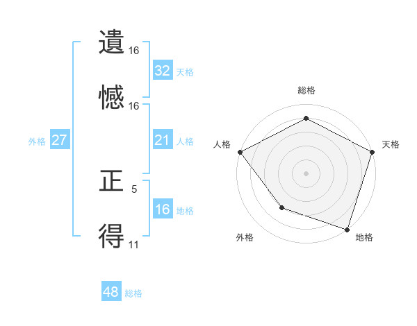 遺憾 正得さんの地格は16画の5点!