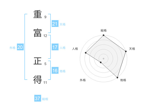重富 正得さんの総格は37画の5点!
