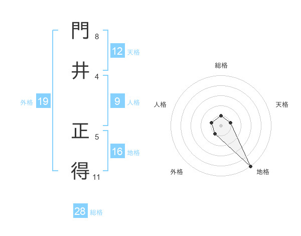 門井 正得さんの地格は16画の5点!