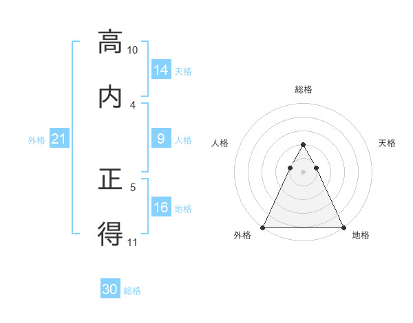 高内 正得さんの総格は30画の2点!