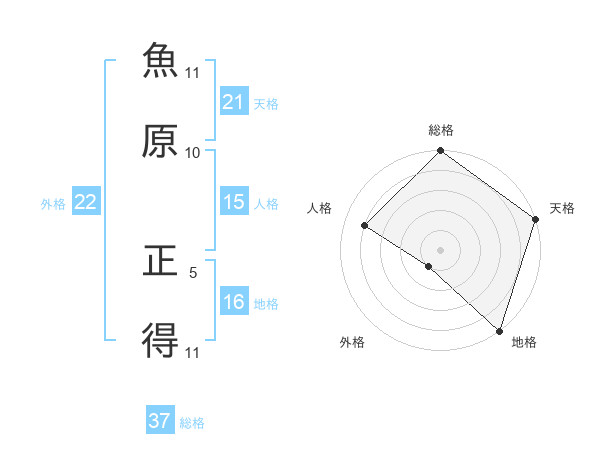 魚原 正得さんの総格は37画の5点!