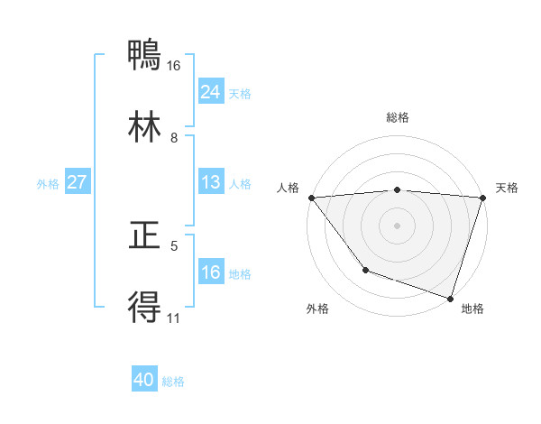鴨林 正得さんを姓名の画数から五運を鑑定