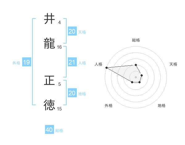 井龍 正徳さんを姓名の画数から五運を鑑定