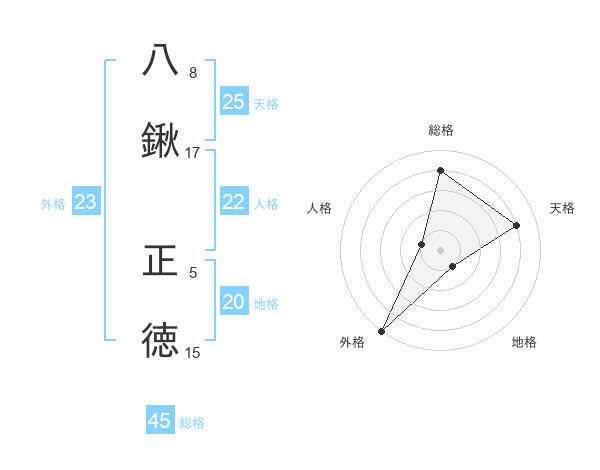 八鍬 正徳さんを姓名の画数から五運を鑑定